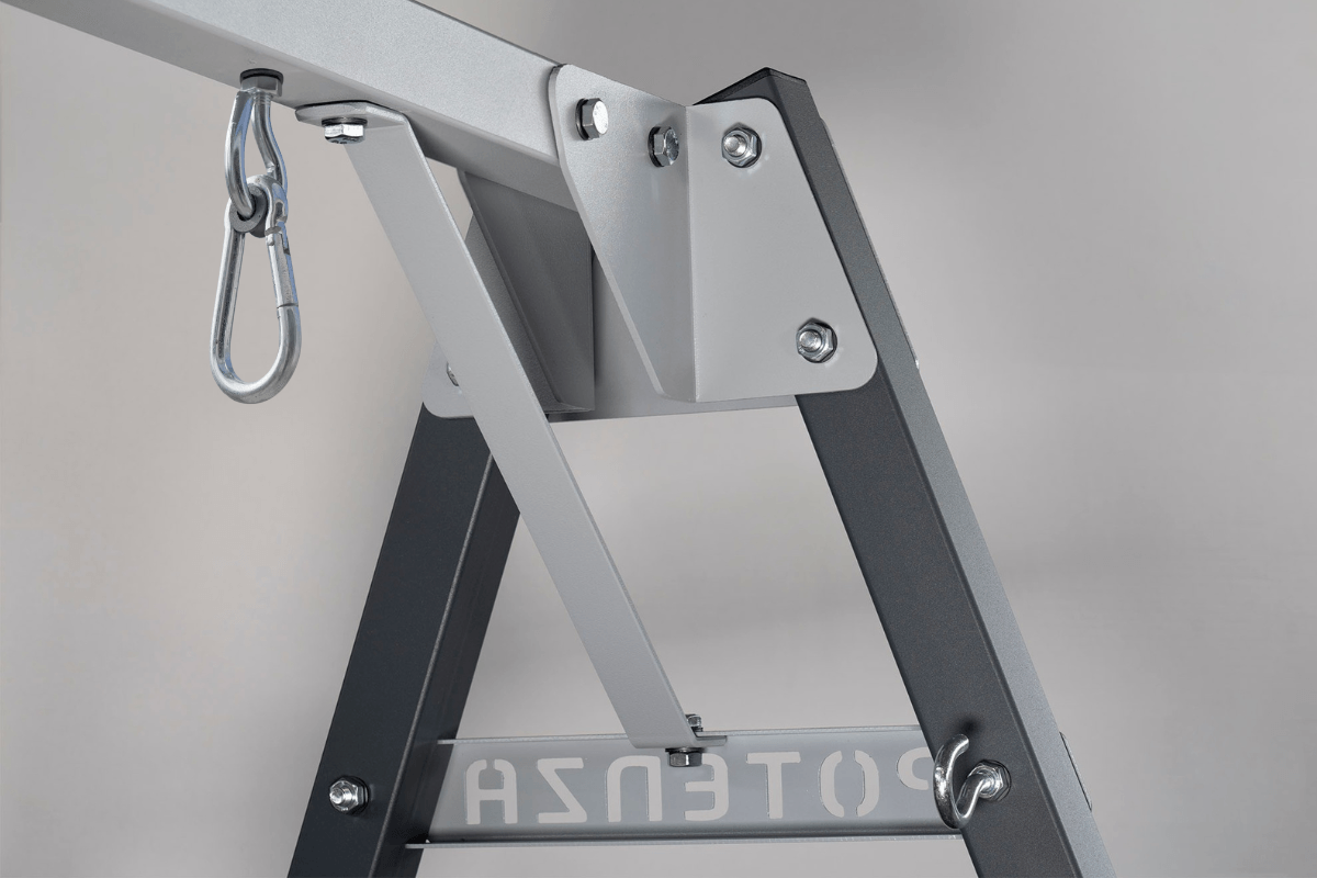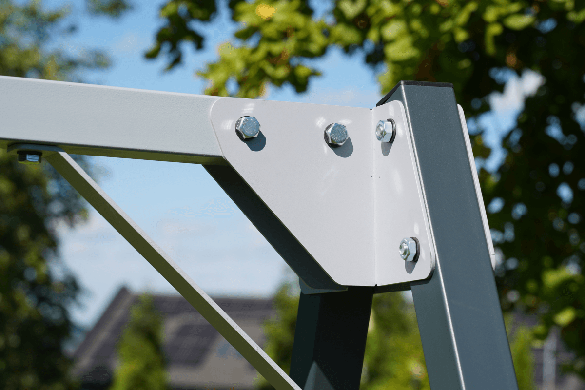Díky použití pohyblivých patek se nohy konstrukce dokonale přizpůsobí terénu. Patky jsou opatřeny otvory, které umožňují pevné připevnění rámu k zemi, což zajišťuje maximálně bezpečné používání.
