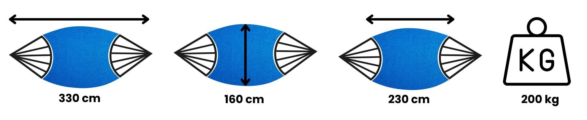 Díky velkému počtu lan (2x více než u standardních houpacích sítí) je to možné ideální je rozložit váhu těla na celou houpací síť. Také má elegantní copánky z pleteného lana ve stejné barvě jako houpací síť.