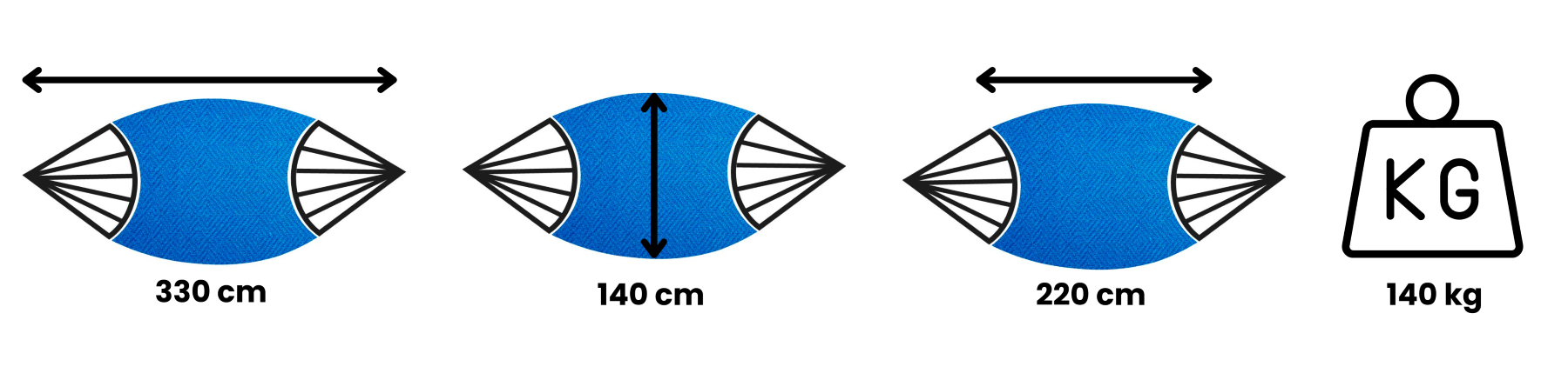 Materiál je vyroben na míru. Každá hrana je navíc zesílena použití dvojité hustoty vazby! To vše zajišťuje, že okraje houpací sítě jsou estetické a zároveň extrémně pevné.