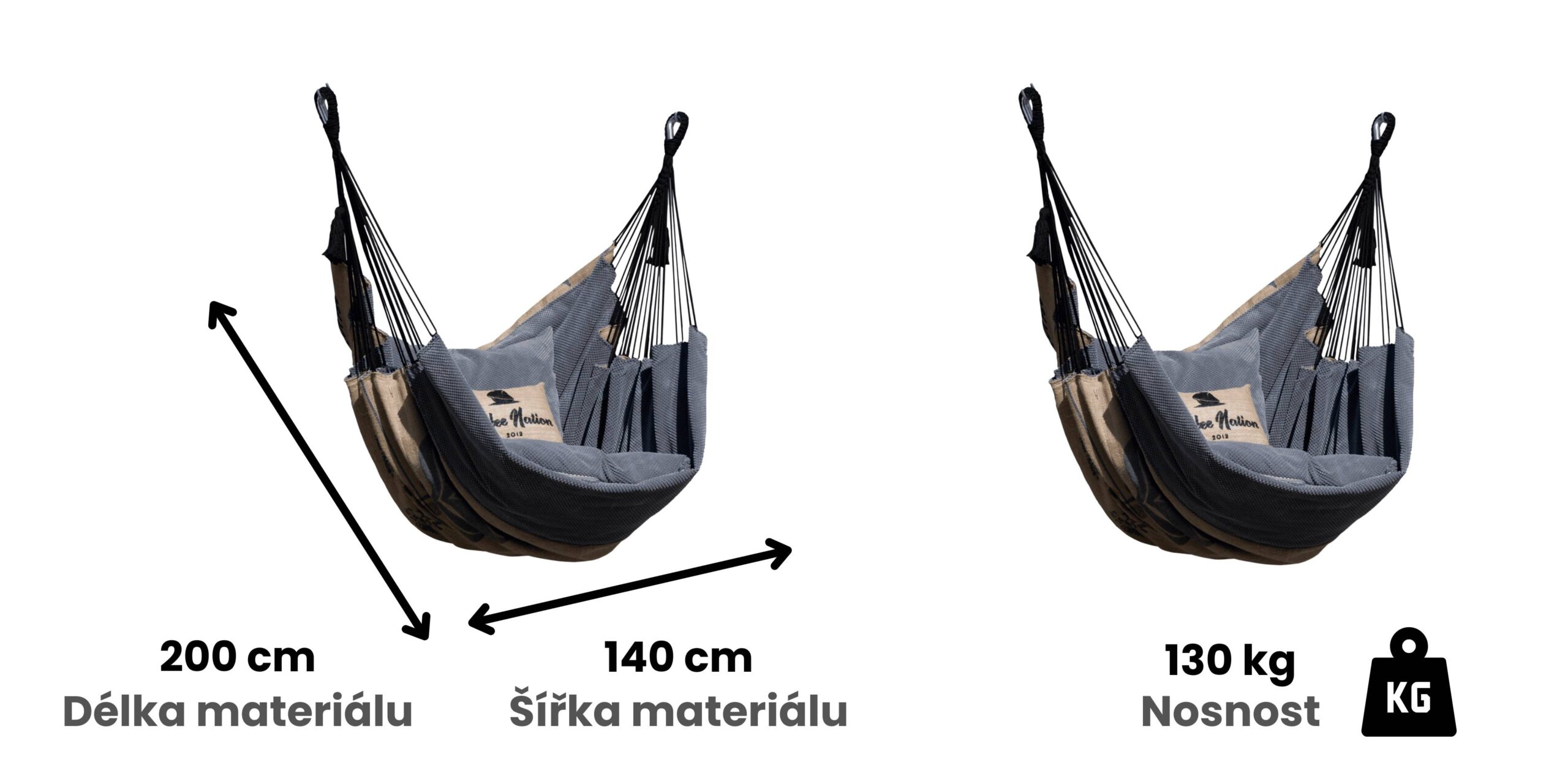 kompatibilní s křesly a židlemi dostupnými v našem obchodě – pro přizpůsobení výšky zavěšení houpací sítě je třeba dokoupit řetízky s karabinami.