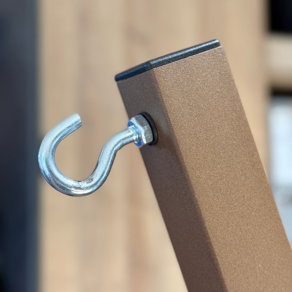 - vyrobeno z oceli 50×50 mm, pískované a následně práškově lakované, což zajišťuje odolnost proti povětrnostním vlivům