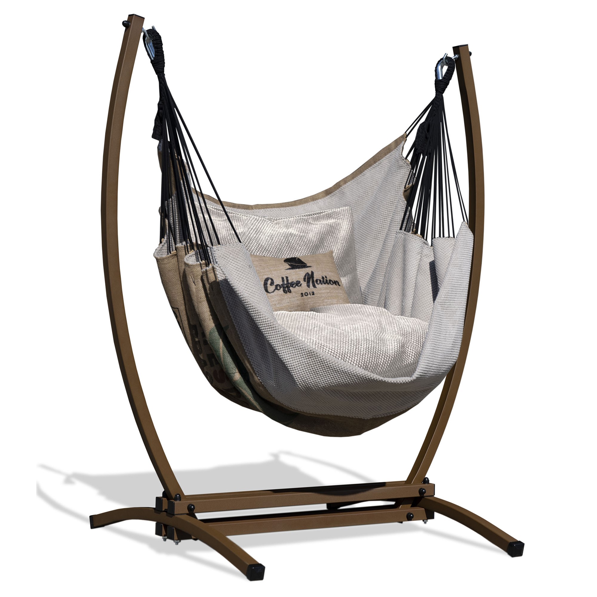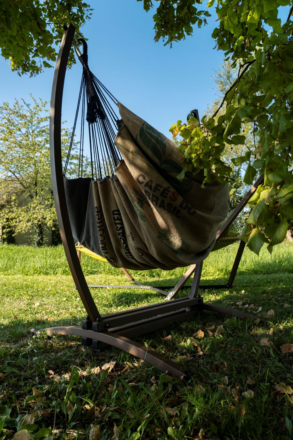 Krásné a originální závěsné křeslo vyrobené v Polsku. Křeslo je vytvořeno ze dvou materiálů – jutového pytle, ve kterém se kávová zrna přepravují do pražírny, a mimořádně měkké a příjemné látky, která je uvnitř. Křeslo je vybaveno dvěma velkými polštáři a jedním menším. Celek poskytuje skvělý pocit odpočinku a relaxace.