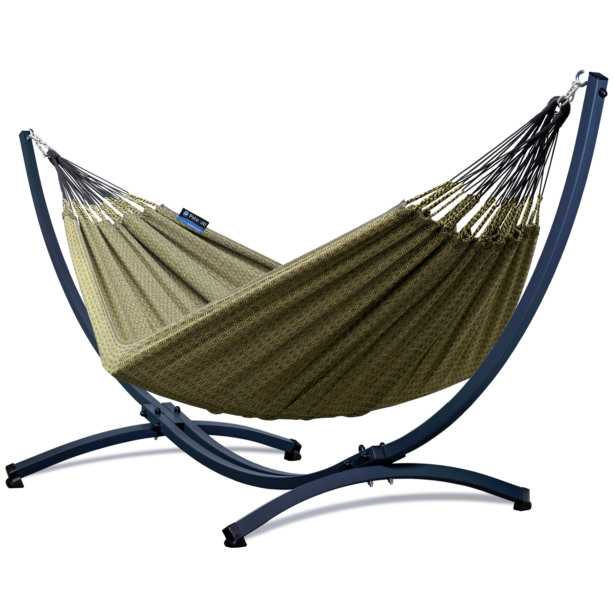 Stojan je vhodný pro houpací sítě, který celková délka nepřesahuje 350 cm. Je ideální pro všechny dvojité houpací sítě, taky s příčkami a stejně jako pro klasické houpací sítě. Rám bez problému vydrží zatížení až 220 kg. Stojan je vyroben z ocelového profilu o rozměru 40x40x2,2 mm.